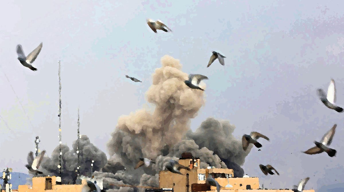 Finally, there is no moral tide that rises on either side. Blood is blood and what is blood in war, but an end to all means to an end. Shed enough of it, and the object of that titular cause, however just, will vanish, leaving only an escalation to extremes. After this, only the lie remains. Are we forever murderers? Shall I shoot down my enemy, call it victory? I want my enemy to see the green, after this grey rain. See the stillness of the leaves in these woods, feel its enchantment. I want them to be anointed by the sun, have crops that spill from bins, see their children play under the blue spruce, where this yellow warbler sings. I want these blessings to shower my enemy until by sheer weight, the shells jailing our souls are shattered, and my enemy might be my friend. There is no politics, no decree, no treaty, that heals. There is no science, no technique, no bullet, that kills hate. Only missiles of mercy, armoury of empathy. Only a gound invasion of compassion. Only the occupation of love.